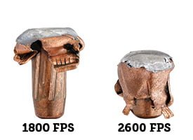 Upon low-velocity 400+ yard impacts, the Heat Shield® tip drives backward into the bullet to initiate expansion. Exhibiting conventional expansion with a large mushroom and 85-90% retained weight the bullet provides deep penetration and large wound cavities.